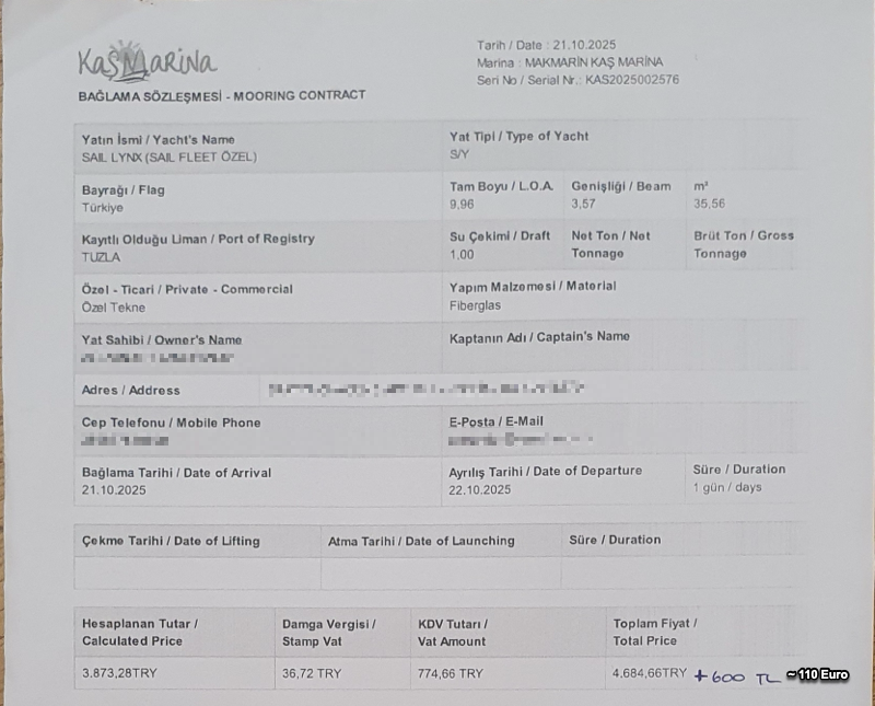 Kas Marina invoice: